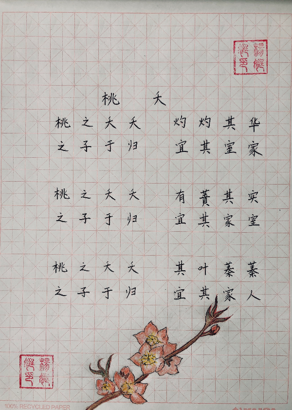 娟秀的字迹,清新的内容,是一场生动的诗词盛宴,更是对春天的赞美,对中华文化的认同,对祖国的祝福。在女神节来临之际,将最美丽的诗词流淌笔尖,将春天写进心里,为武汉加油,为祖国祝福。大家表示,疫情当前,虽负了一年春色,换山河无恙值得!