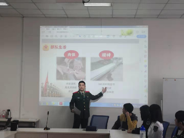 此次征兵动员会通过退伍大学生的参军经历、真实感受,进一步向同学们讲解了参军的政策,及对国家、社会、人生的意义,有效地动员了广大学生参军报国的热情。