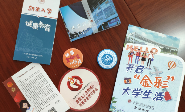 2020级新生的“金彩”大礼包是金融学院特地为金院新生专门设计、定制的专属礼包,礼包中包括“金彩”卡、一套明信片、一封来自金院的信、一套徽章、一张学生党建服务中心卡。“金彩”卡上标记了新生的相关信息和温馨提示,并附宿舍钥匙和校园一卡通、宿舍钥匙;明信片上是一处处充满立信校园气息的照片和寄语;徽章包含了金融学院的院徽、培养定位以及党的期望;一封来自金院的信和党建服务中心卡,包括了学院团委学生会的祝福和简介、党建工作的流程和要求,帮助新生快速融入金融学院。
