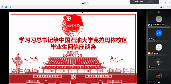 7月10日,金融学院线上举办“学习习近平总书记给中国石油大学克拉玛依校区回信”专题座谈会,金融学院团委书记顾正云、副书记夏艺华、团学骨干和学生代表参与了本次座谈会。本次座谈会由团委管承瑜主持。
