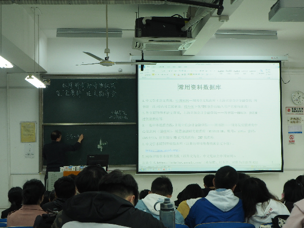 开班仪式后,焦武老师对同学们进行了“金鹰杯”论文写作指导。首先,焦老师介绍了论文写作资料的查找方法,并亲自演示。接着,他指出论文选题的方向,切入点要具体,唯有社会热点方能吸引读者的关注。在格式上,论文的要素必须齐全,而且文中的观点要有时效性。焦老师强调,科创切记要坚持,不能眼高手低,更不能半途而废。最后,焦老师逐一耐心地解答了同学的疑问。