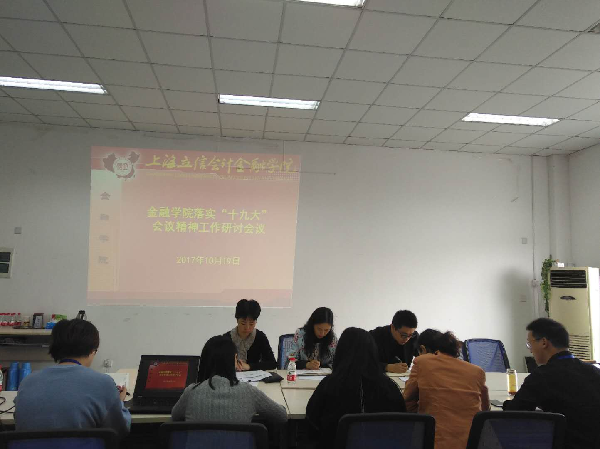 为了更好的学习宣传落实进党的十九大精神会议精神,10月19日上午,金融学院在五教314会议室召开学习落实“十九大”精神工作研究会。会议由姜雅净书记主持,学院相关人员参加会议。