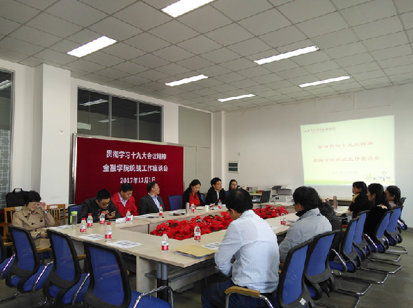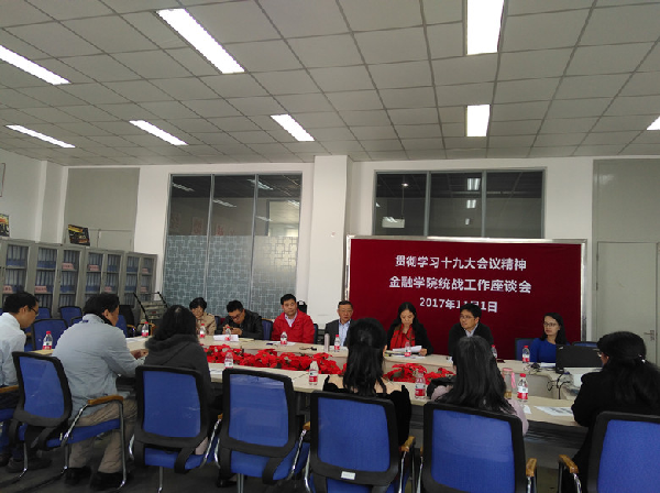 为学习宣传贯彻党的十九大会议精神,加强统一战线工作,发挥民主党派、党外人士在学院中心工作中的参政议政作用,金融学院于11月1日下午在5314会议室召开十九大精神学习统战座谈会。来自民盟、民建、无党派的教师代表和学院党政班子、党委委员出席会议。会议由学院党委书记姜雅净主持。