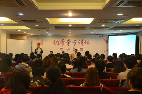 五位校友围绕“为什么考研”和“怎样考研”这两个大家特别关心的问题,从“自我定位、院系筛选、各科复习方法”等方面,为大家进行了深入浅出的讲解。