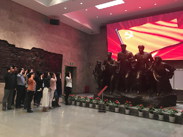 在场馆讲解员的引导下,党员们瞻仰了中共“四大”的红色的历程。面对鲜红的党旗,全体党员庄严宣誓,高亢激昂的入党誓词响彻整个展览大厅。通过缅怀革命先烈,弘扬爱国主义精神,把英烈精神注入每一位党员的血脉,使全体党员接受了一次深刻的党性教育。