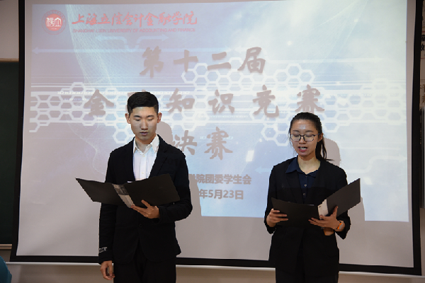 5月23日,第十二届金融专业知识竞赛决赛在6104教室举行,国际经贸学院周勇老师、金融学院焦武老师、魏忠老师担任本次评委。来自三个年级的12名同学参加决赛。