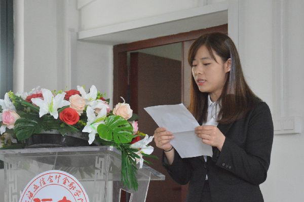 姜书记指出,党的十九大要求高校培养社会主义合格建设者和可靠接班人,广大青年团员要学懂弄通十九大精神,做实做好我院共青团工作。习近平总书记在北大座谈会对广大青年提出爱国、励志、求真和力行四点希望。姜书记对共青团在新形势下人才培养方面提出要求,希望团委要从广大同学的需求出发,把工作做到学生的心坎里。团支书起到表率引领作用,在工作中进行梳理总结,实现自我教育,自我完善。团员同学应以主人翁精神,起好带头作用,立志存真。她肯定了本次活动中团委和团支部开展的活动,内容主题新颖,形式丰富多彩,意义影响深远。最后,姜书记提出当代青年大学生要有爱国的“心”、青年大学生要有将责任扛在肩上的“愿”、团干部要有引领的“力”、新时代的团委要有跟党走的“行”。