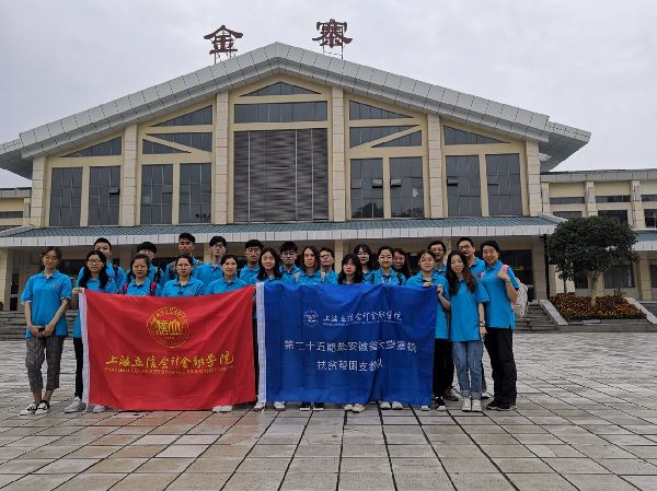 赴安徽省金寨县天堂寨镇扶贫帮困支教活动是我校大学生暑期社会实践活动的品牌项目,至今已持续开展25年,赢得了社会的广泛赞誉与好评。2003年,上海市教育系统年度精神文明十佳好事提名奖;2007年,《繁荣农村需在产业结构调整上下功夫—来自安徽省金寨县天堂寨的调研和思考》在《中国改革报》上发表;2008年,国家教育部颁发“高校校园文化建设优秀成果二等奖”;2010年,《解放日报》曾以大篇幅进行了报道;2012年,市文明办、市委宣传部、市教委、团市委颁发上海市大学生暑期社会实践活动最佳项目奖;2013年,团市委、市委宣传部、市文明办、市教卫党委、市教委、市学联颁发“传递希望,梦想起航”大别山帮困活动优秀项目奖 ;2014年,校团委报送的《十九载情系大别山——共普金院“别”情》成功入选上海市十大最具影响力社会实践项目;2015、2016年连续两年获评上海市大学生暑期社会实践优秀项目奖;2017年荣获上海市文化科技卫生“三下乡”优秀项目奖,全国大中专学生志愿者暑期“三下乡”社会实践优秀团队,全国大学生暑期社会实践百强项目。