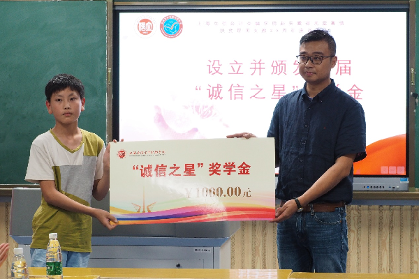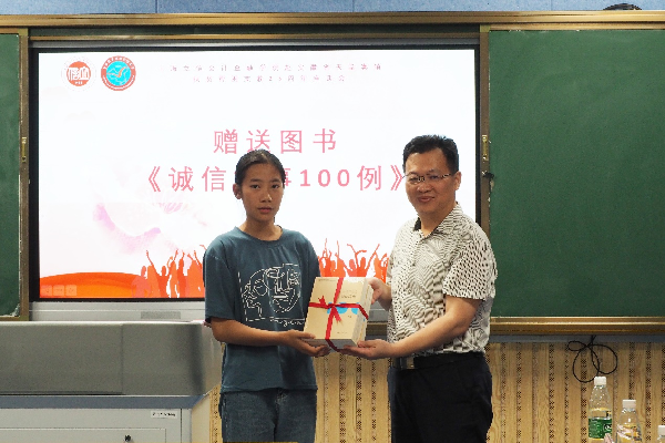 座谈会前,与会师生参观了我校赴安徽省天堂寨镇扶贫帮困支教25周年活动图片展,一幅幅生动的图片,一段段动人的故事回顾了25年支教历程的付出、坚守与深情。座谈会上,两校代表举行了捐赠仪式,王军华和余微为“诚信文化教育基地”揭牌,并设立颁发首届“诚信之星”奖学金,赠送100本图书《诚信故事100例》,两校诚信文化源远流长,以期在今后共塑诚信文化之源,共育诚信文化之美,将“诚信”贯穿教育教学全过程。陈贤禄代表天堂寨镇政府为我校赠送二十五周年纪念鼎。