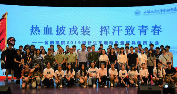 9月8日下午,“热血披戎装 挥汗致青春”——金融学院2019级新生军训动员会暨征兵动员大会在浦东校区小剧场举行。校武装部郭庆东、一团一营政委白涛、一营全体指导员出席,全体2019级新生参加。大会由学院团委书记顾正云主持。