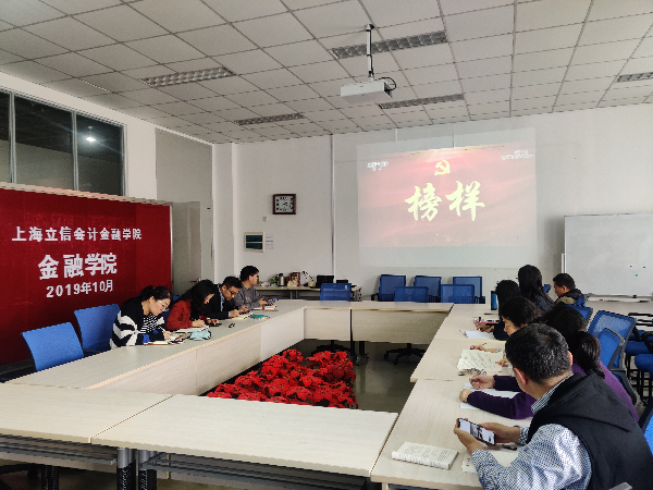 10月22日下午,金融学院金融系党支部组织党员在5314会议室观看了由中央组织部、中央广播电视总台联合录制的《榜样4》专题片,金融学院党政班子一同参加了学习。学习会由金融系党支部书记、系主任储峥主持。