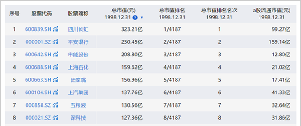 作为曾经的A股老大,四川长虹目前的市值已经不到20年前的一半,而中国石油市值与13年前的历史最高峰相比,更是下降了90%之多。