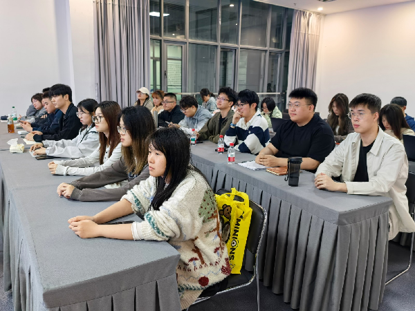 他鼓励同学们尽早构建系统知识体系,搭建分析问题逻辑框架,持续关注实事热点问题,坚持阅读财经杂志或报纸,注重日常积累,实现厚积薄发。互动环节,同学们围绕AI是否会替代金融从业者、职场进阶心得等话题与申睿波进行深入交流,现场气氛热烈。