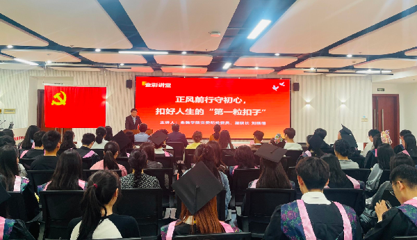 刘晓明以“正风前行守初心,扣好人生的‘第一粒扣子’”为题进行“金彩讲堂”授课,他进一步强调了深入贯彻中央八项规定精神学习教育的重大意义,表示新时代青年要扣好人生的第一粒扣子,走稳迈入社会的第一步,用实际行动做到心有所畏、言有所戒、行有所止。