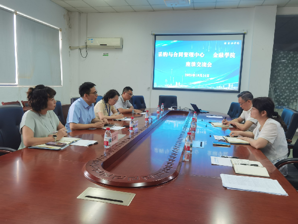 10月14日,采购与合同管理中心主任黄寒啸一行来学院开展专题座谈交流。金融学院党委书记程振强、副院长(主持行政工作)吴洁及学院办公室相关老师参加了本次座谈。