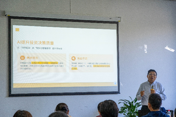 当传统节日遇上智能时代,“师生共话AI,赋能新金融”环节迸发出精彩的思想火花。陈文政从金融行业的演进脉络出发,从育人理念到行业实践,围绕“AI重塑公司金融:机遇与风险并行”主题,全方位解析AI在金融决策、效率提升与商业模式创新等方面的应用图景。