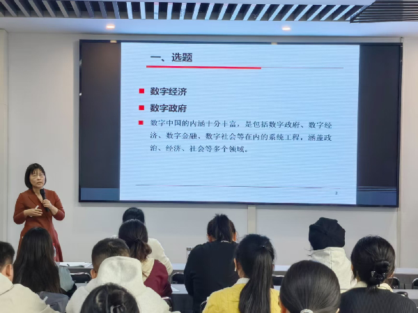 互动交流环节,参会师生就数字政府测度指标的实操性、GAI授权的风险防控、文学创作中AI工具的合理运用等问题与三位主讲老师深入探讨。此次交流不仅深化了在场师生对AI赋能交叉学科应用的理解,为交叉学科间的互通和融合提供了新的思路。