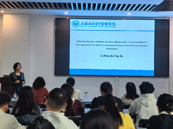 苏靖围绕“When Do Managers Delegate Decision-Making Authority to Generative AI? An Integrated Model Based on Perceived Efficiency, Time Pressure, and Trust Mechanisms”主题进行分享,深入剖析管理者向生成式人工智能(GAI)授权决策的心理机制与情境约束因素。该研究揭示了效率驱动型理性信任在GAI授权中的核心地位,为企业优化人机协作策略、提升管理效率提供了重要理论启示。