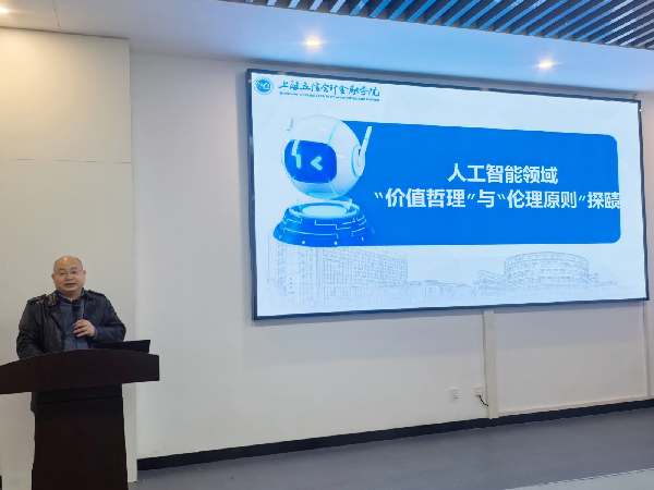 李怡轩以“人工智能领域‘价值哲理’与‘伦理原则’探赜”为题展开分享。他指出,以AI为代表的人工智能技术本质上是中性工具,其实际效果取决于开发与应用的方向。他强调,在科技研究及实践应用中应进行系统性的价值引导,从而确保其在客观上有效推动社会进步及各项事业的持续发展。