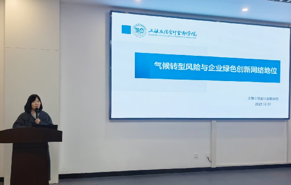 韩云的汇报主题为“气候转型风险与企业绿色创新网络地位”。她结合机器学习与复杂网络分析等方法,系统分析了气候转型风险对企业绿色创新网络地位的影响及传导路径。该研究为企业应对转型风险、推动复杂网络环境下的绿色创新,提供了实证依据与决策参考。