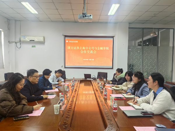 12月16日,国元证券上海分公司副总经理、东方路营业部总经理董学峰一行到访我院,与学院领导及教师代表就进一步深化校企协同育人进行座谈交流。金融学院副院长(主持行政工作)吴洁及相关教师代表出席此次会议。