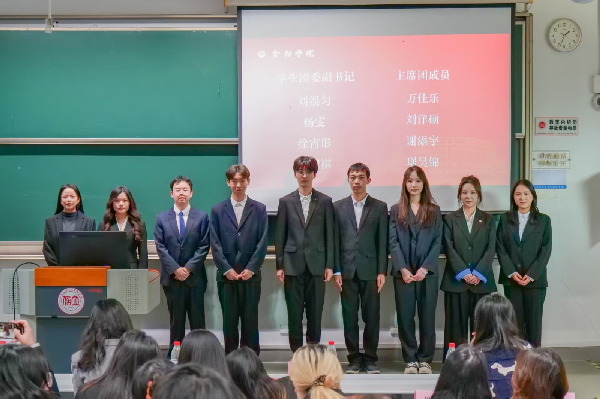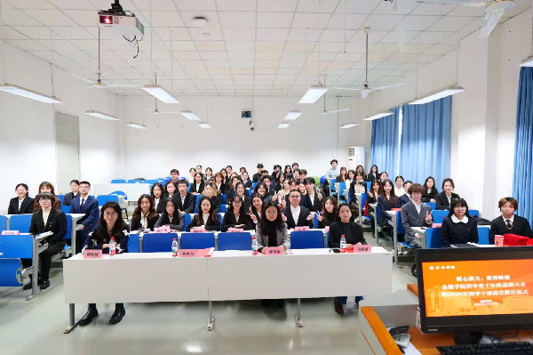 为展示金融学院团学风采,增强团队凝聚力和向心力, 12月31日,金融学院“凝心聚力,数智赋能”团学骨干年终述职大会暨2026年团学干部岗位聘任仪式在上川路校区第五教学楼101教室顺利举行。金融学院党委副书记、副院长陈秋兰,团委书记管承瑜,副书记马晓雅、曹媛媛出席会议,两届团学干部共68人参加。