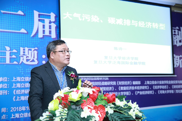 主题报告第一阶段,上海市人民政府参事、人民银行调查统计司原司长、上海立信会计金融学院特聘教授(客座)盛松成以“数字货币的悖论”为题分析数字货币发展中的悖论,指出数字货币的悖论在于人们必须在追求币值稳定和利用货币政策调节经济之间做出选择;他认为无现金社会在中国相当长时间里无法实现,对数字货币的前途持怀疑态度。复旦大学经济学院和泛海国际金融学院书记、长江学者陈诗一教授报告题目为“大气污染治理与经济转型发展”,指出雾霾治理在短期会对经济产出造成负面影响,但是对于经济的长期可持续发展而言,经济发展质量或效率的逐步改善无疑更为重要;需要调整优化产业布局,严控“两高”行业产能,大力培育绿色环保产业,构建市场导向的绿色技术创新体系,发展绿色金融,壮大绿色产业规模,积极支持培育一批具有国际竞争力的大型节能环保龙头企业。主题报告第一阶段由上海立信会计金融学院金融学院院长许文新教授主持。