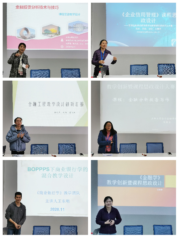 参赛教师精心准备,分别从课程思政教案设计、课程教学创新情况和教学创新设计三方面进行15分钟的课程汇报。老师们从自己的专业特色出发,结合教学大纲和教学内容,全面说明整门课程的设计思路,积极挖掘课程中蕴含的思政元素和所承载的育人功能,展示典型教学案例中如何体现课程创新与思政设计,体现出各具特色的教学设计和教学风采。